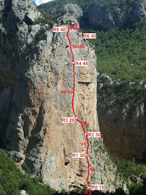 Segons els aperturistes, la via està equipada i es deixa fer bé............ je, je. (deu ser per a “lolos” i altres herbes, perquè per nosaltres hem necessitat tota la nostra experiencia, recursos i motivació per fer-la.
